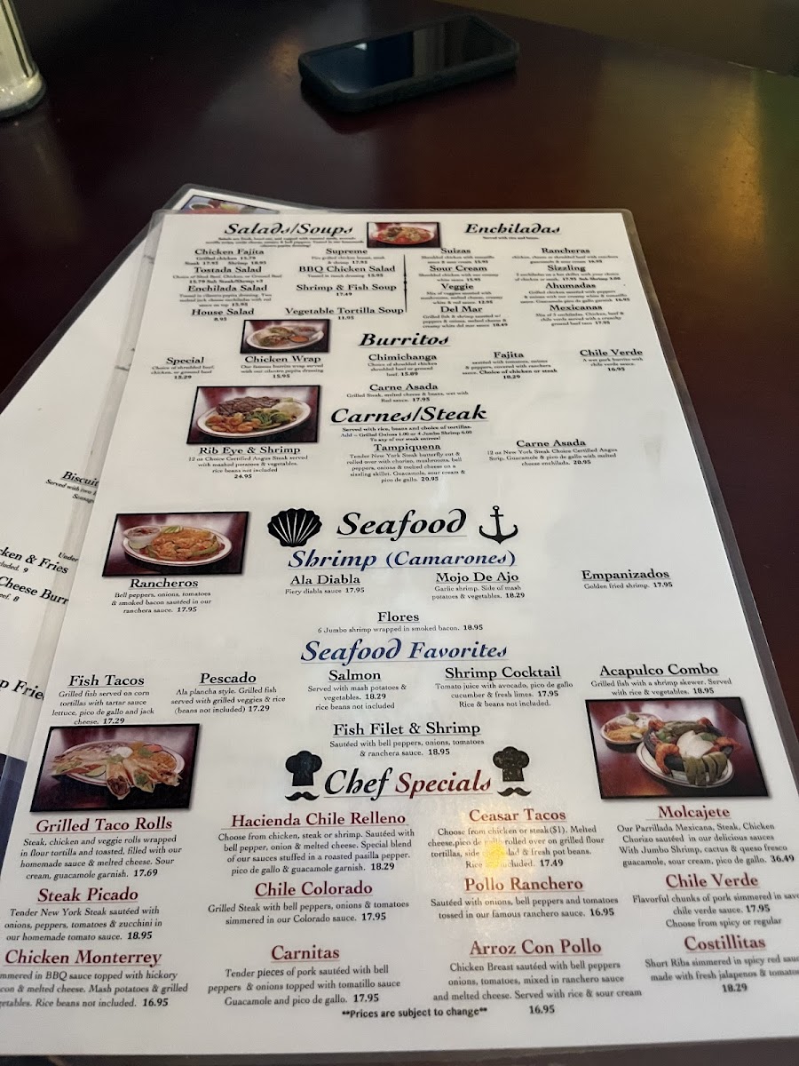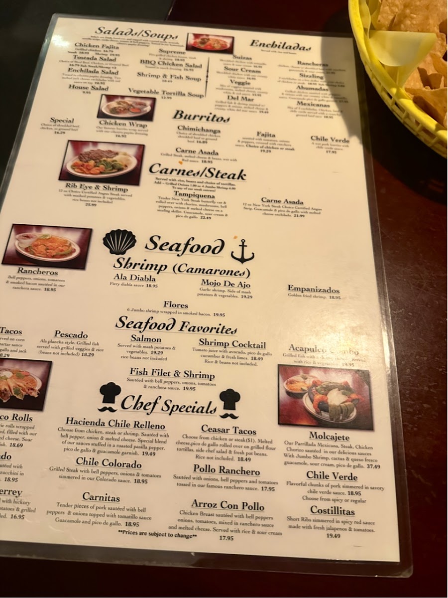 “ This place has some legit food. Free chips and salsa is always amazing, especially when the salsa is very good. The fish and shrimp plate was worth two meals and very delicious. I don’t understand a Mexican restaurant playing USA country music. At least play Norteño, something Mexican. …it’s better music, especially in a Mexican restaurant. ”