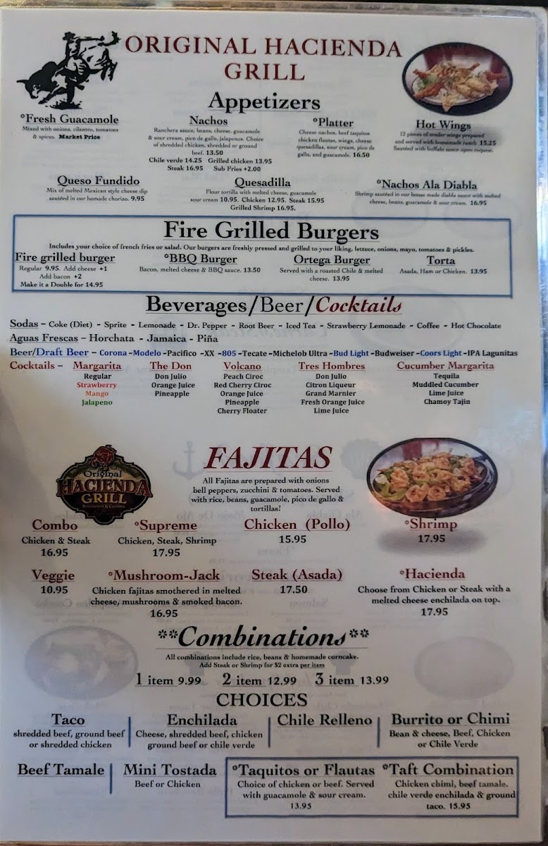 Original Hacienda Grill in Bakersfield, CA, serves authentic Mexican cuisine with generous portions and bold flavors. Known for standout dishes like enchiladas Ahumadas, sizzling fajitas, and the highly praised Chile Relleno, this local gem impresses with its fresh ingredients and rich, comforting meals. The warm, down-home atmosphere complements attentive service, making each visit a satisfying experience. Vegetarian options and flavorful staples like menudo and shrimp plates add variety to the menu. Free chips and salsa set the perfect tone for a meal that feels both genuine and welcoming. Original Hacienda Grill is a must-visit for lovers of hearty, traditional Mexican food.